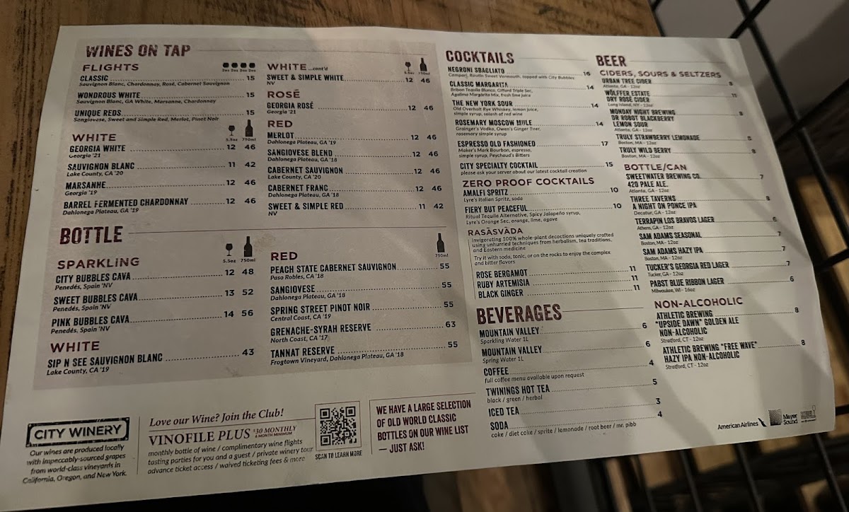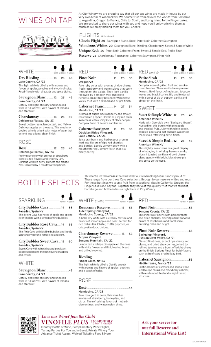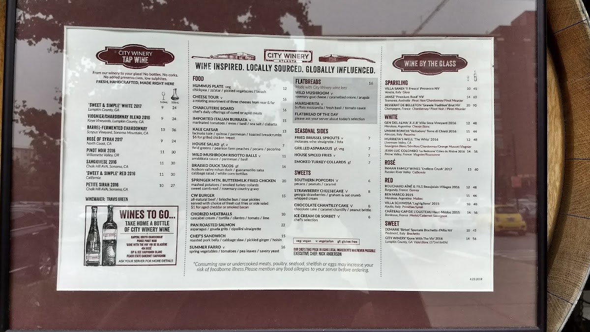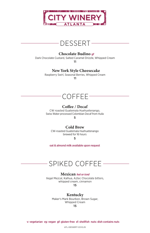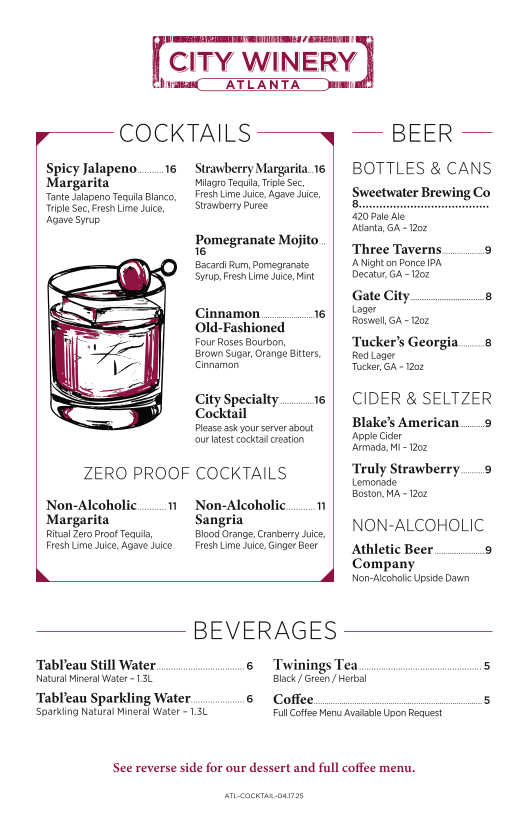 City Winery Atlanta Menu (Updated October 2025)
